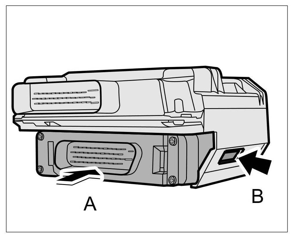 2. Connect the two connectors -A- and slide in the locking mechanism -B- until it engages securely.