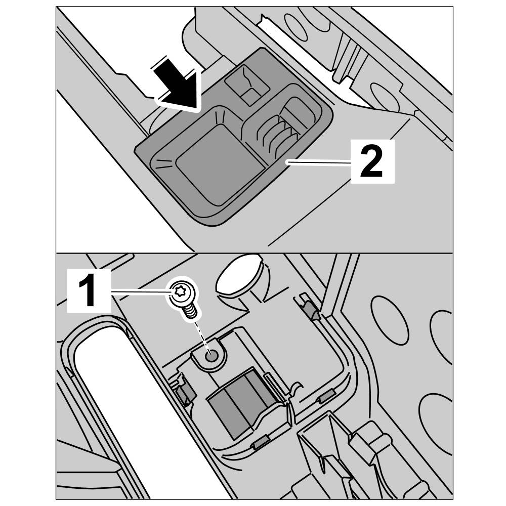 3. Press in locking mechanism insert -2- until it clicks into place and tighten with fastening screw -1-.