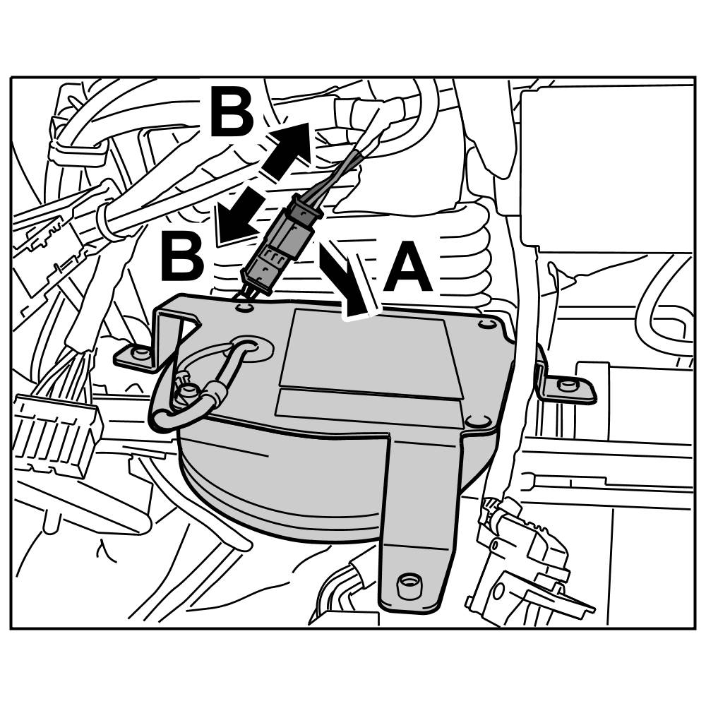 4. Release plug connection -arrow A- and disconnect it -arrows B-.