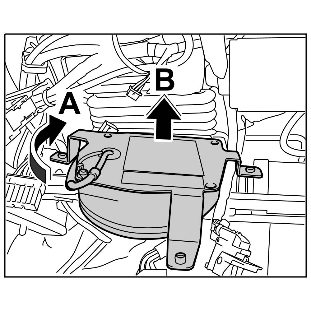 6. Remove suction fan for seat surface -arrow B-.