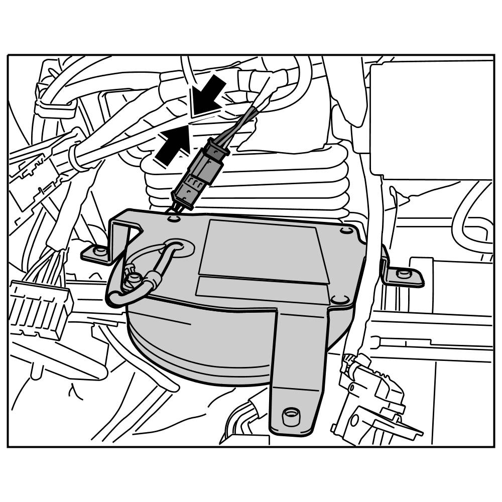 3. Remove holder for suction fan for seat surface -arrow- and swivel suction fan for seat surface forward until you can reach the plug connection.
