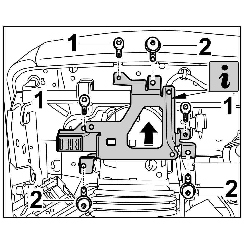 5. Tighten fastening screws -1 and 2-.