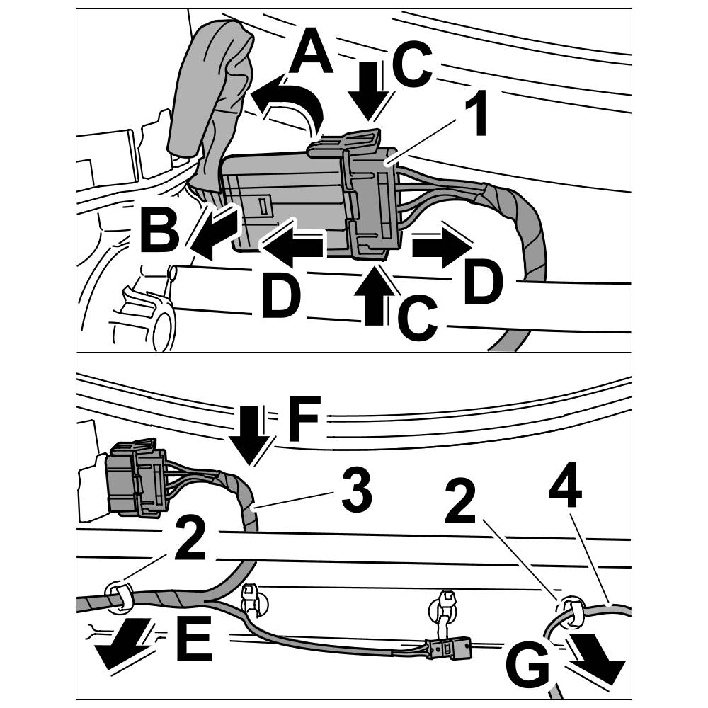 3. Release plug connection -arrows C- and disconnect it -arrows D-.