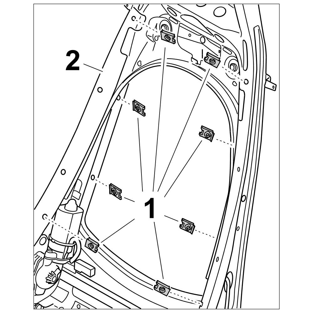 2. Unclip fixing clips -1- from the backrest frame -2- , check them and replace if necessary.