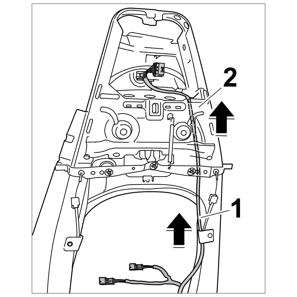 1. Pull wire harness for backrest -1- up into the backrest frame -2-.