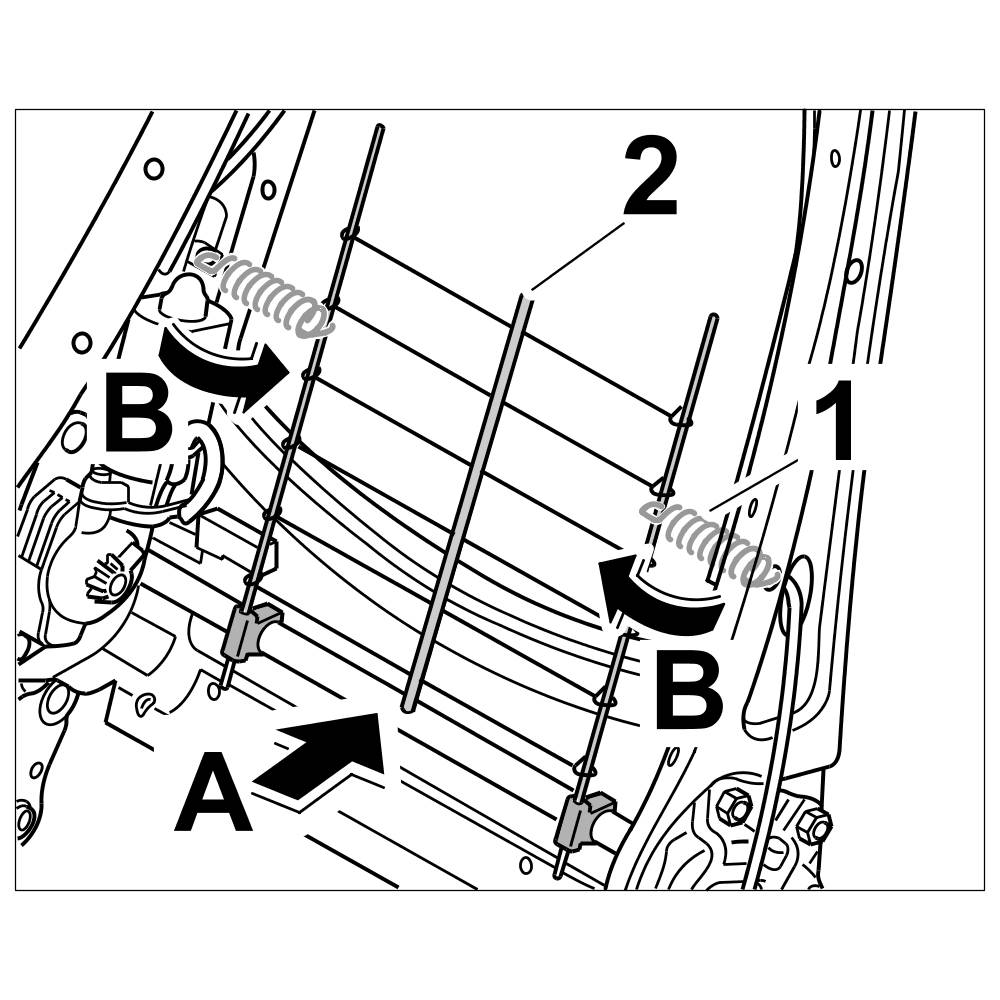 1. Disengage tension springs -1- at left and right on inner spring -2- ( -arrows A- ).