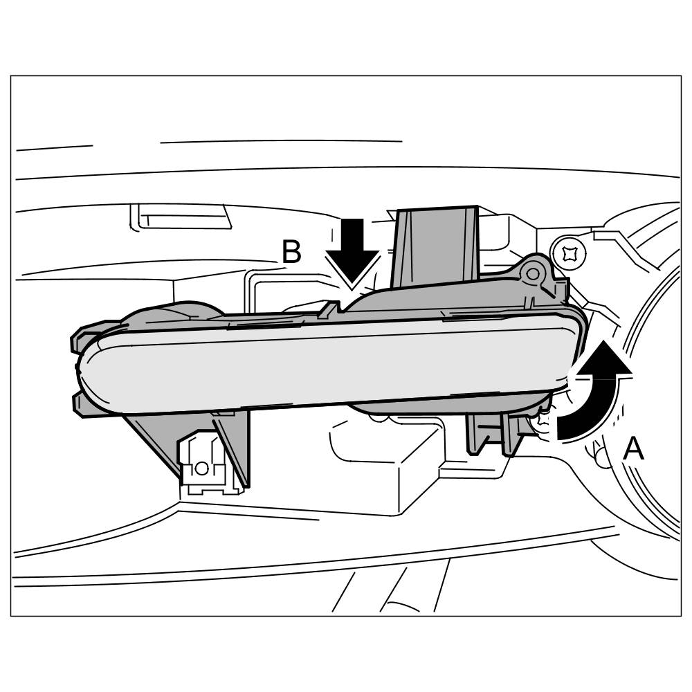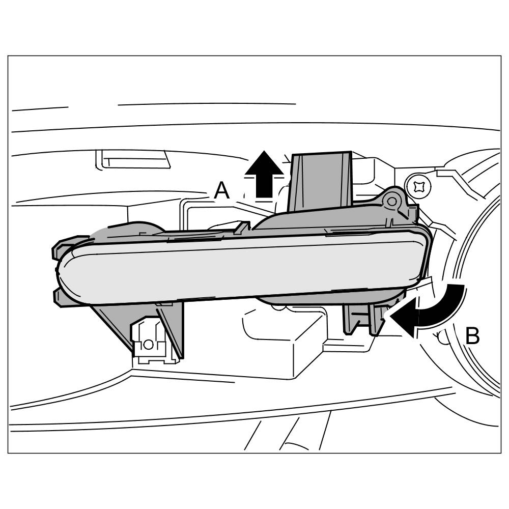 2.2. Remove light bulb for marker light with the upper guide out of the front apron -arrow B-.