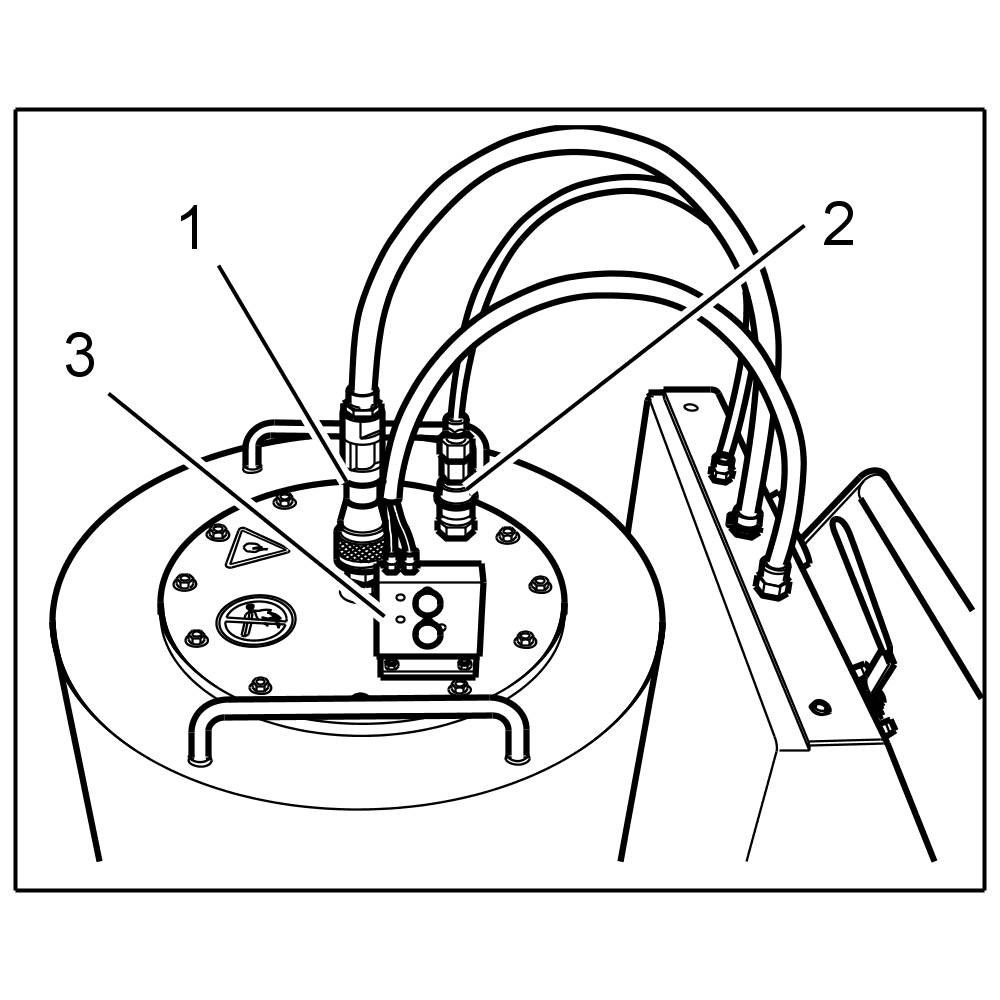 1.3. Attach the pneumatic stop switch -3- to the tank and tighten the two knurled nuts.