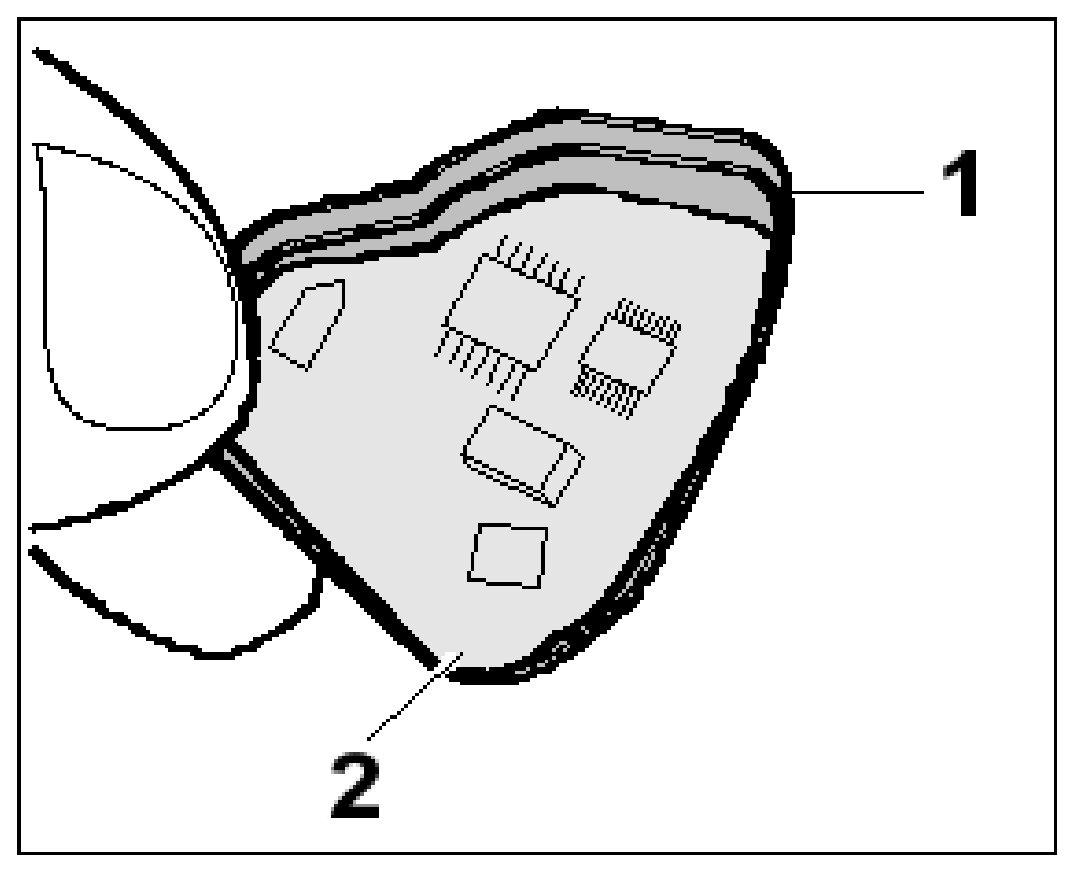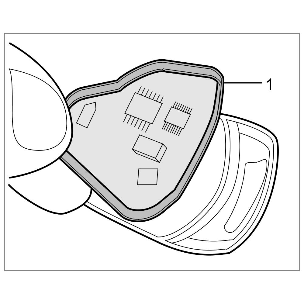 3. Insert silicone pad -1- with PCB into the remote control housing.