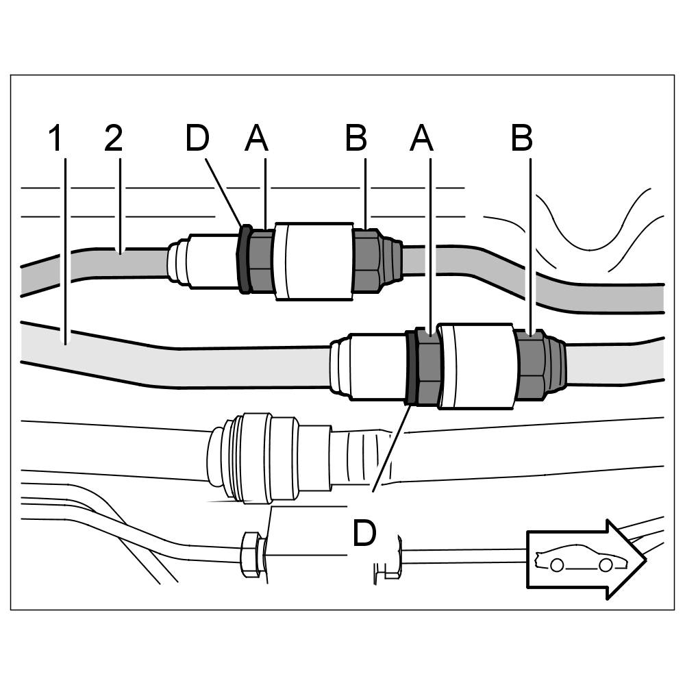 1.2. Once you have released the plug-in coupling (by inserting the loosening tool), pull the lines apart -arrows-.