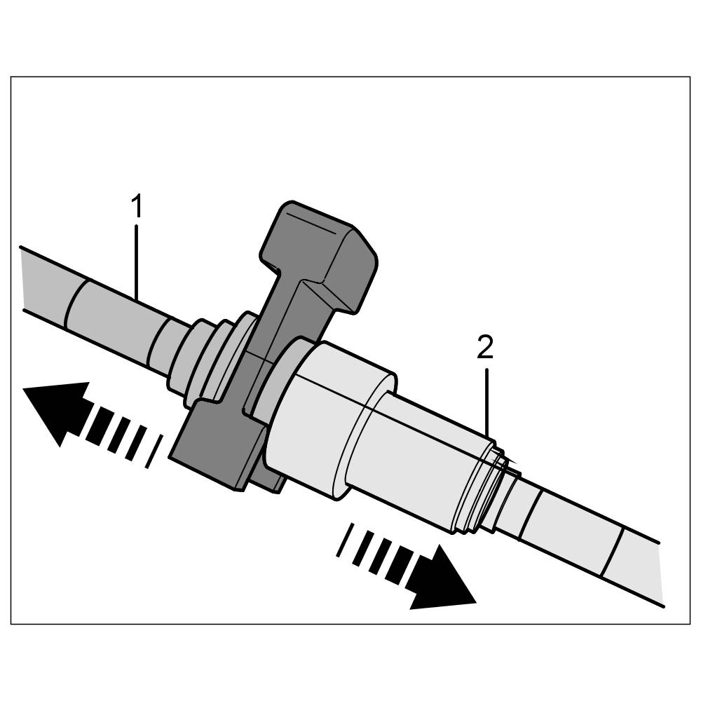 If the plug-in coupling is locked correctly, you should be able to feel slight axial play between the connector -1- and plug-in sleeve -2-. A plug-in coupling cannot be partly locked.