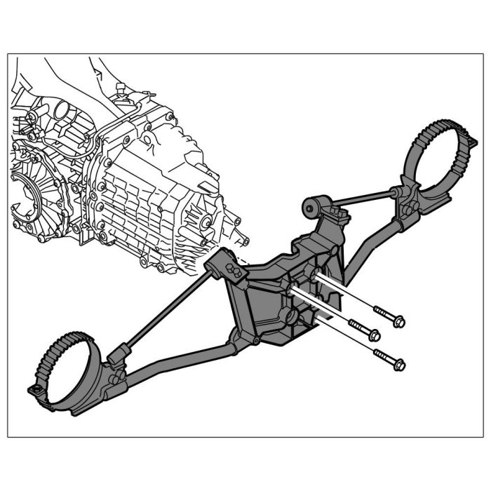 Unscrew M10 x 70 screws -1- and remove cross member -2-.