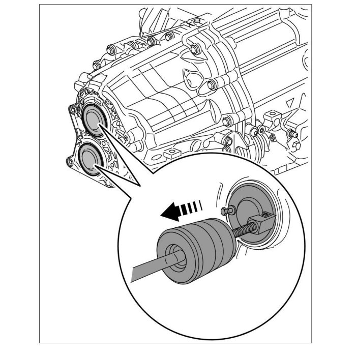 The sealing ring for the long halfshaft flange cannot be replaced while the long halfshaft flange is still installed. In the event of leaks, the sealing ring must always be replaced together with the mounting saddle.