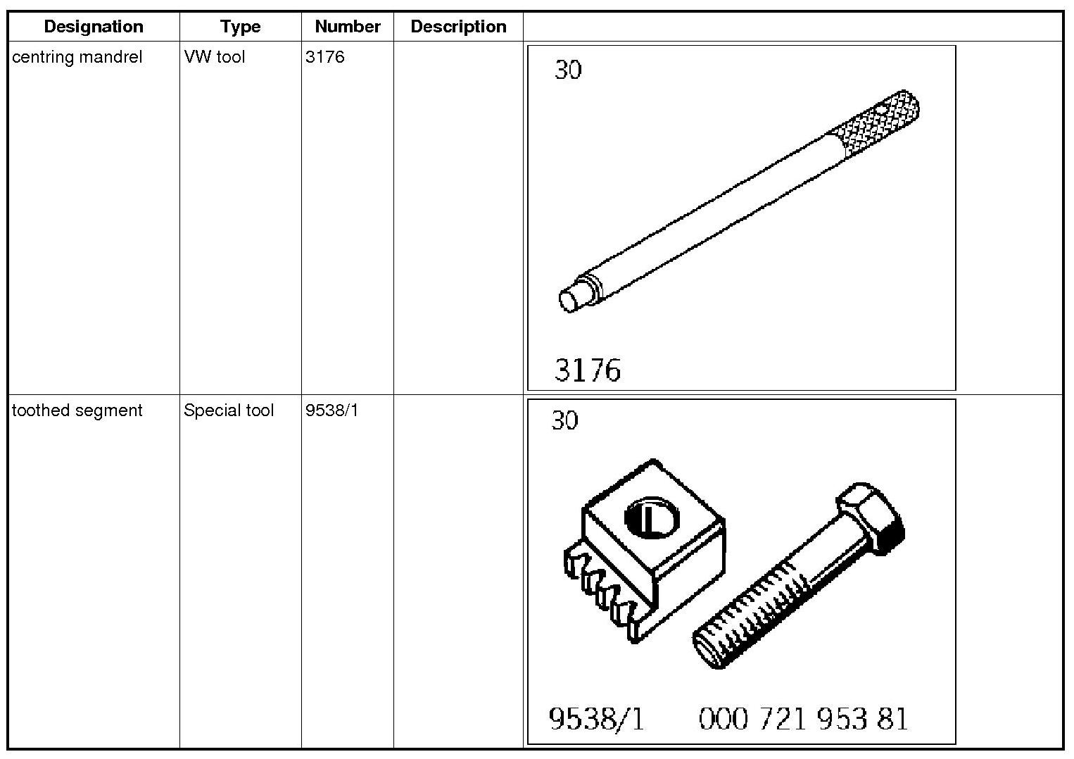 Position special tool toothed segment 9538/1 ( -1- ) for countering at the starter ring gear.