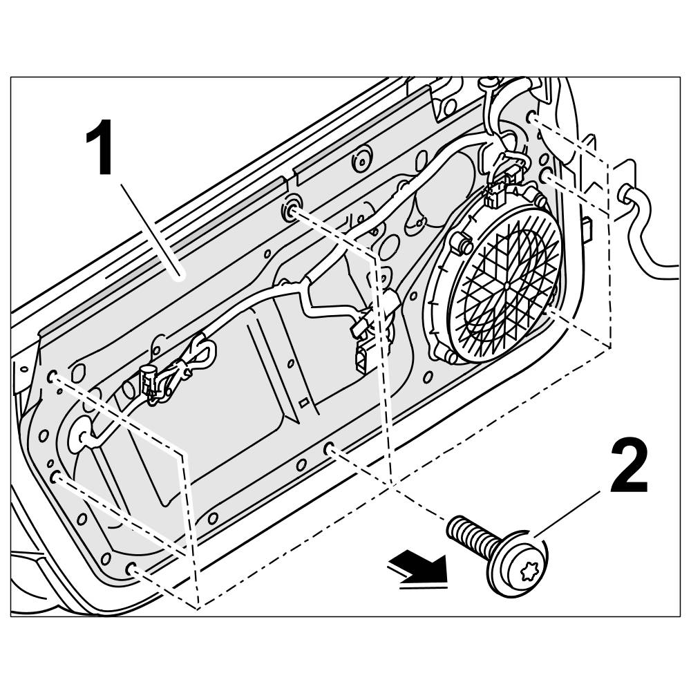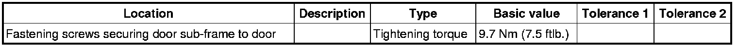 6. Tighten fastening screws -2- on the door sub-frame -1-. => Tightening torque: 9.7 Nm (7.5 ftlb.)
