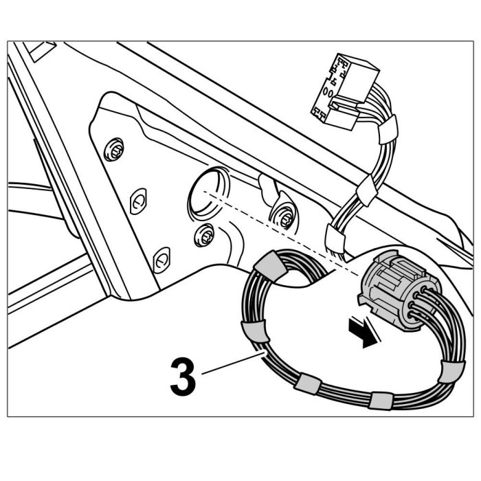 2. Slide the wire harness through the door aperture from inside and press the rubber sleeve on the wire harness into the door aperture from inside.