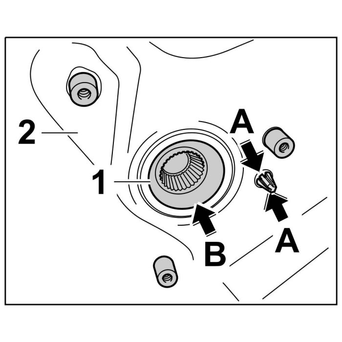 1. Unlock the electrical plug connection for the microswitch -1- by pressing the locking tab -arrow A- and remove -arrow B-.