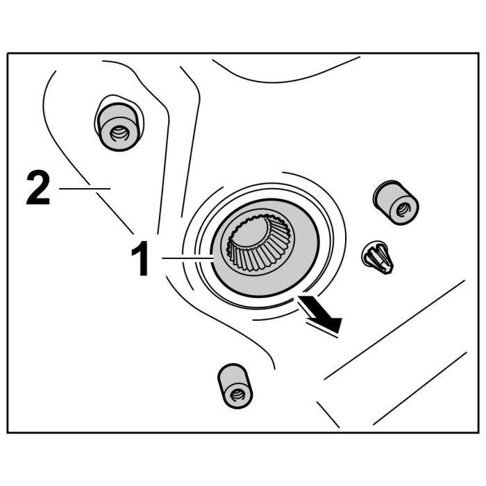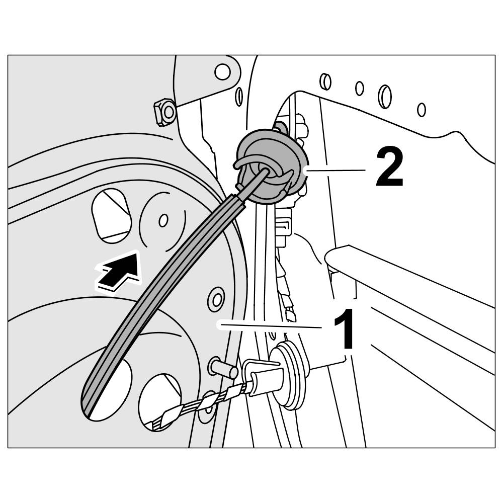 1. Press rubber sleeve for electric line -1- and bowden cable -2- inwards.
