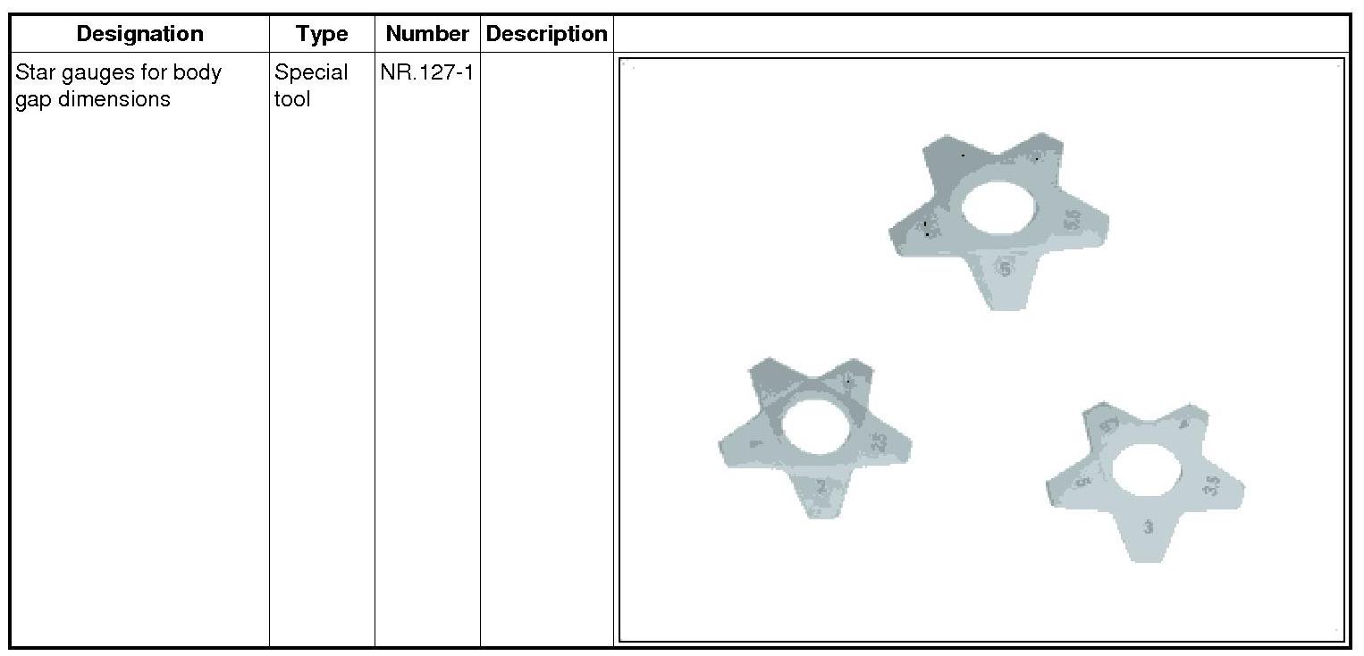 - Use star gauges to check the gap dimensions. Star gauges for body gap dimensions NR.127-1