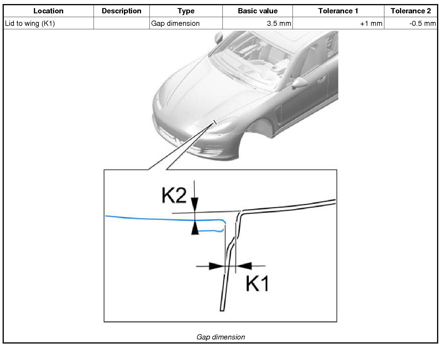Gap dimensions -> Gap dimension: 0 mm+1 mm-1 mm