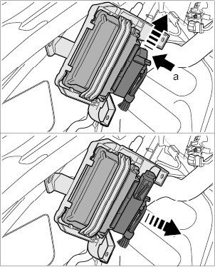 3. Release latch on connector -a- and pull off connector.