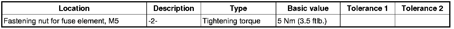 6. Secure the fuse element with new fastening nuts -2-. => Tightening torque: 5 Nm (3.5 ftlb.).