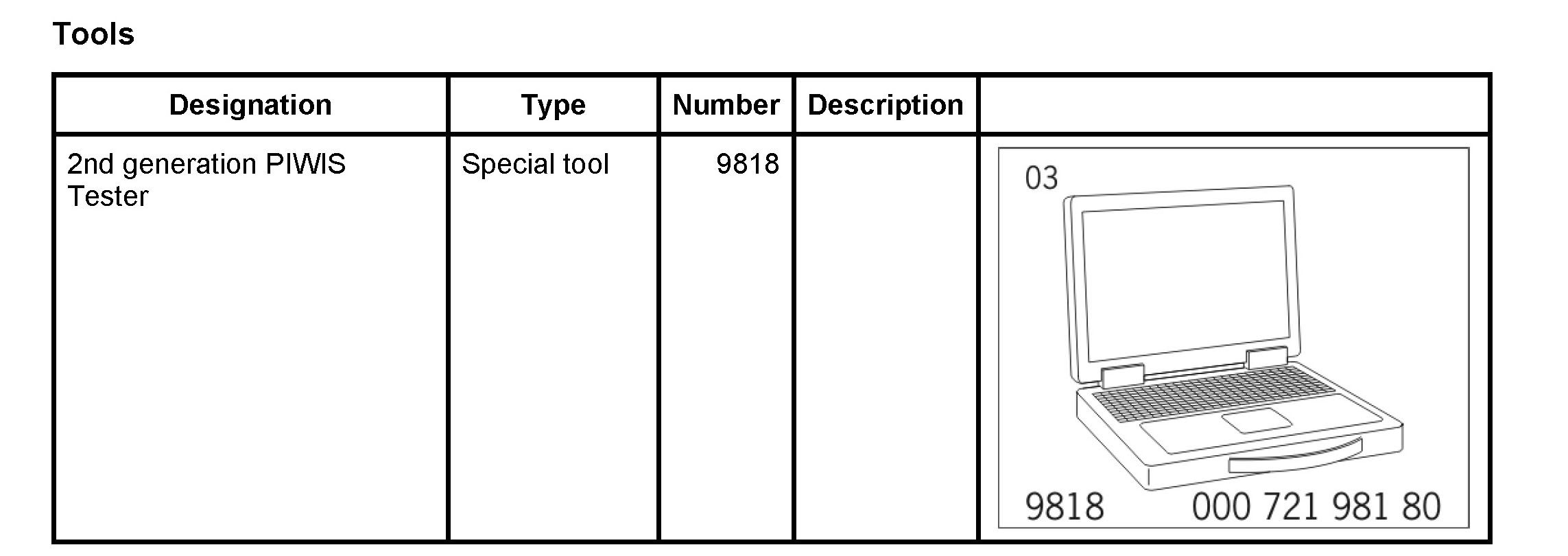 2. If the control unit was replaced, the control unit must be adapted to the vehicle using the 2nd generation PIWIS Tester 9818.