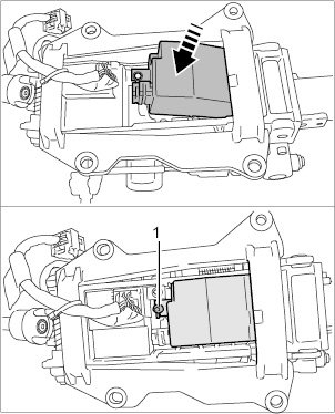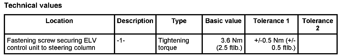 2. Secure ELV control unit with the fastening screw -1-. -> Tightening torque: 3.6 Nm (2.5 ftlb.)±0.5 Nm (±0.5 ftlb.)
