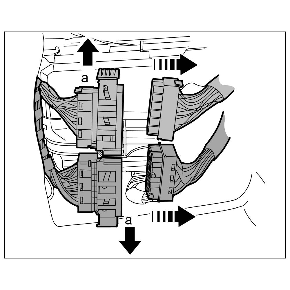 1. Unlock and disconnect electric plug connections on the main wire harness -a-.