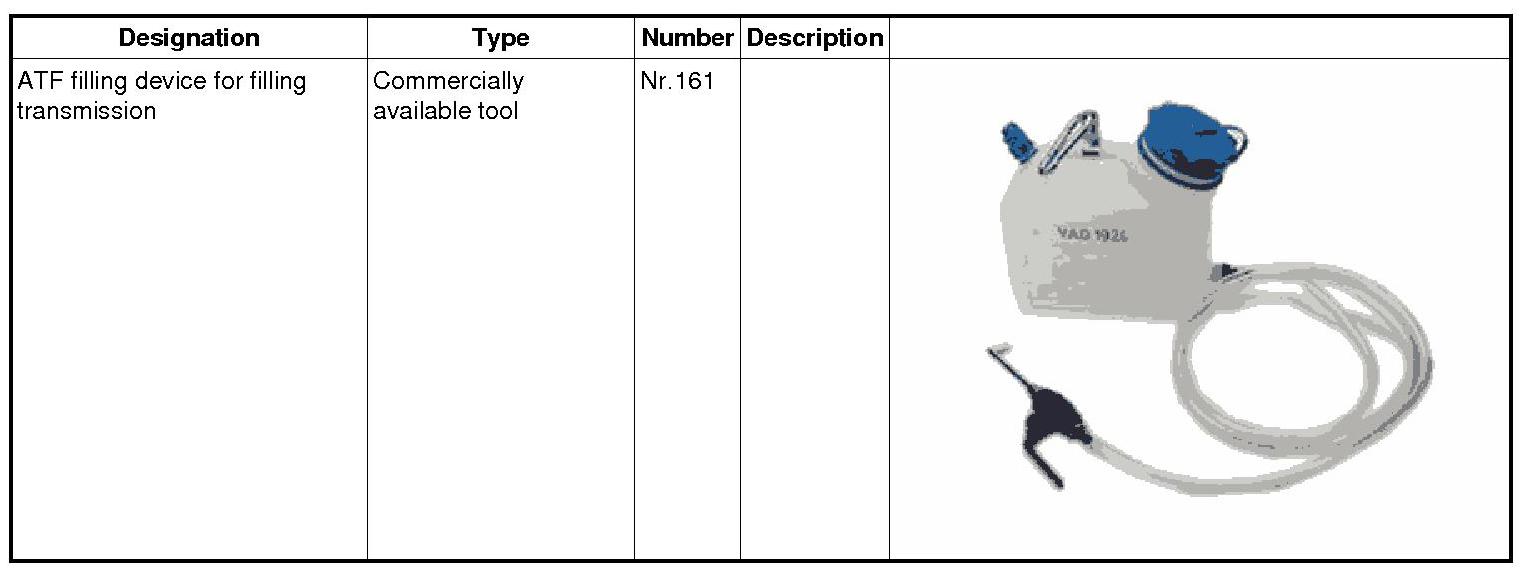 Use the ATF filling device for filling transmission Nr.161 to top up with oil for final drive until oil emerges at the oil filler opening.