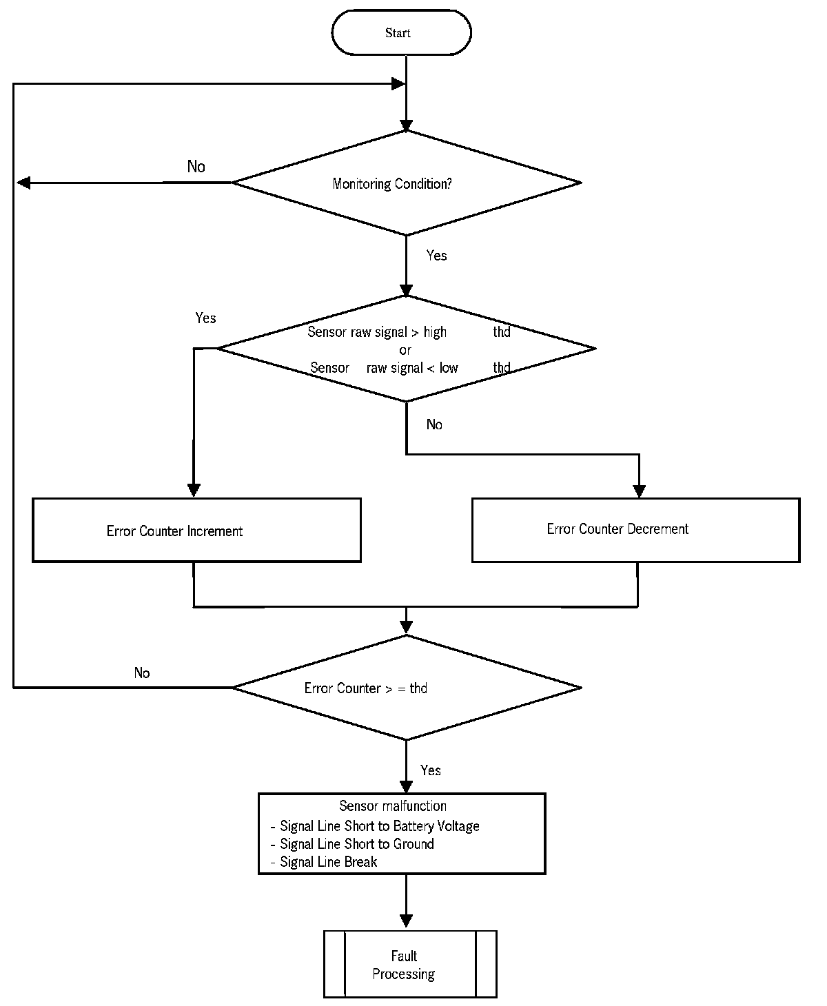 - Sensor signals out of a defined range are regarded as circuit malfunctions shorted to BATT, GND or Open circuit.