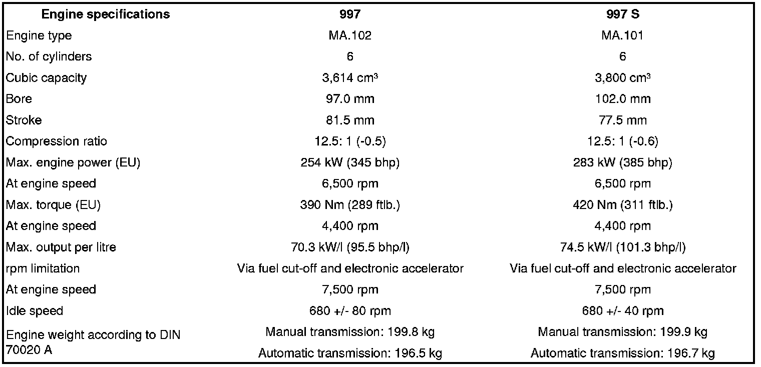 Engine specifications - MA.101 and MA.102