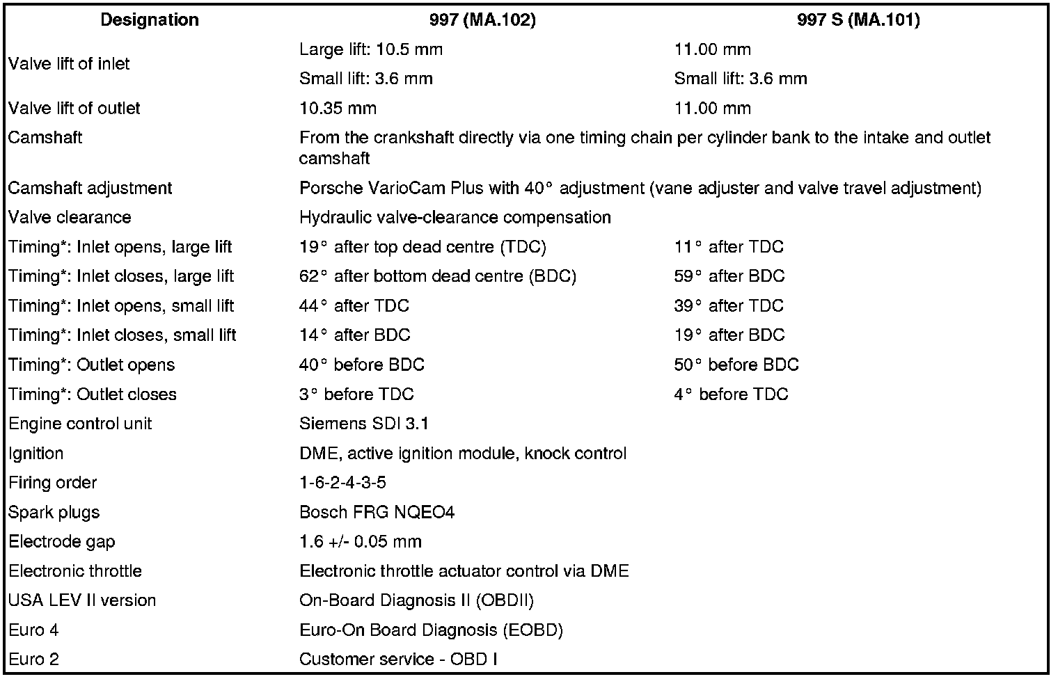 * Timing in late position with 1-mm valve lift and zero clearance