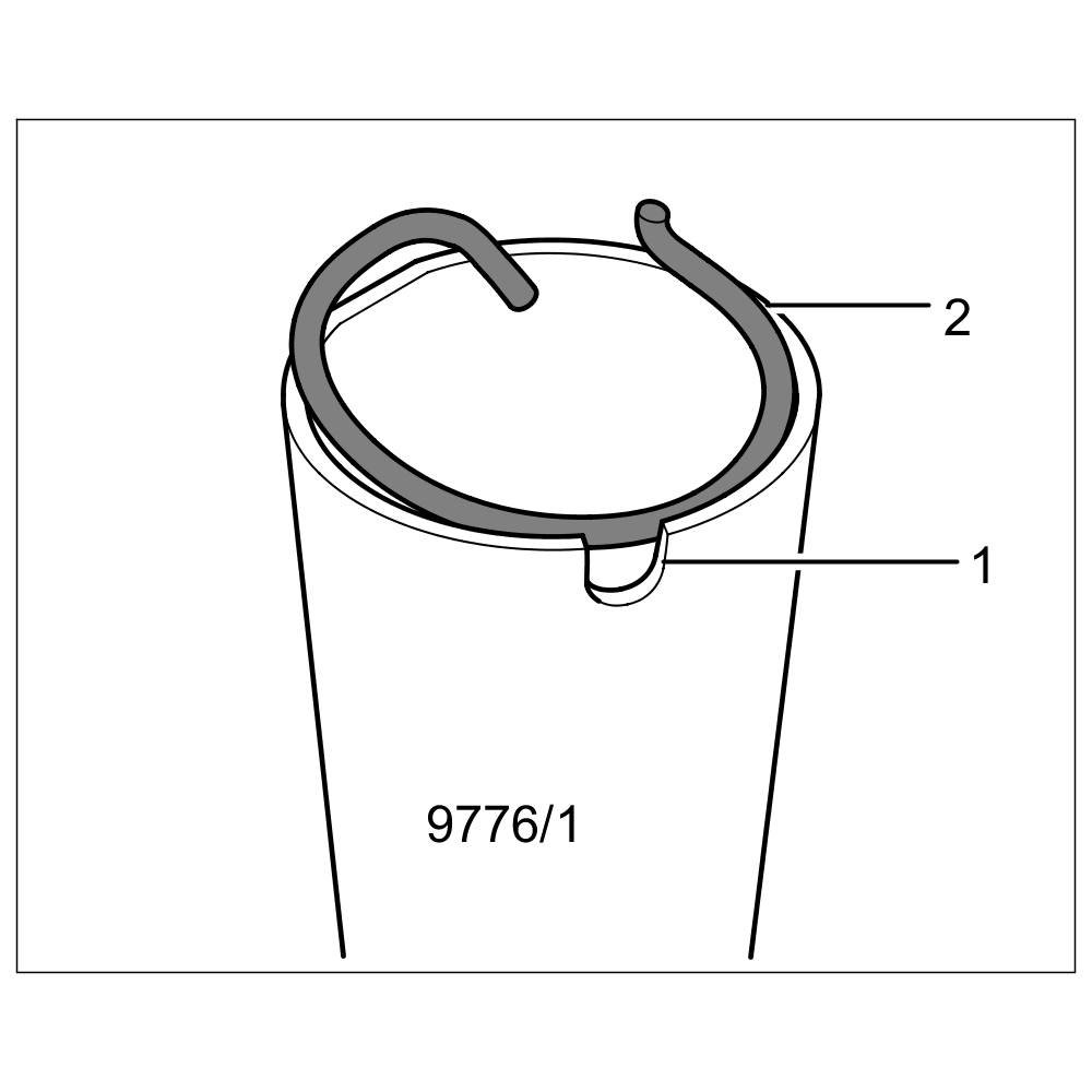 6.2. The circlip -1- must be fitted as shown. The hook -2- is at the 9 o'clock position.