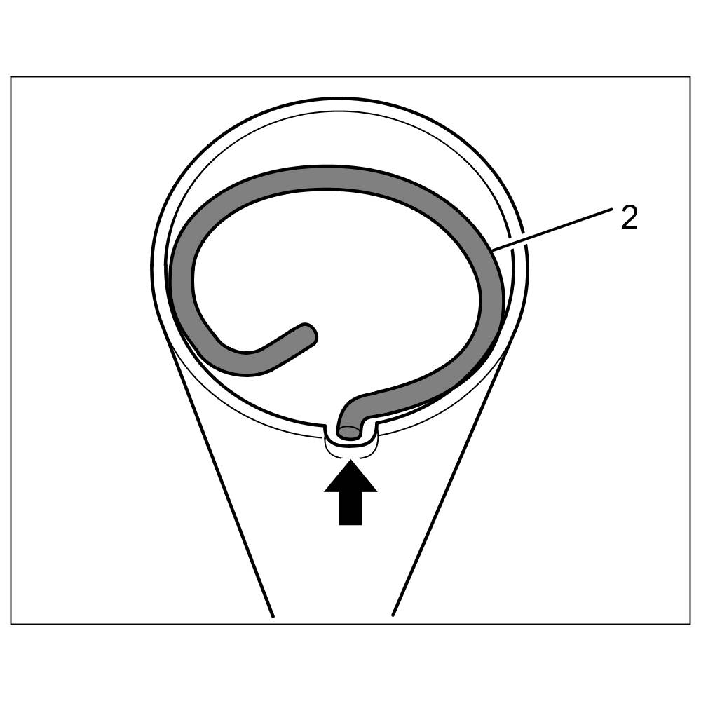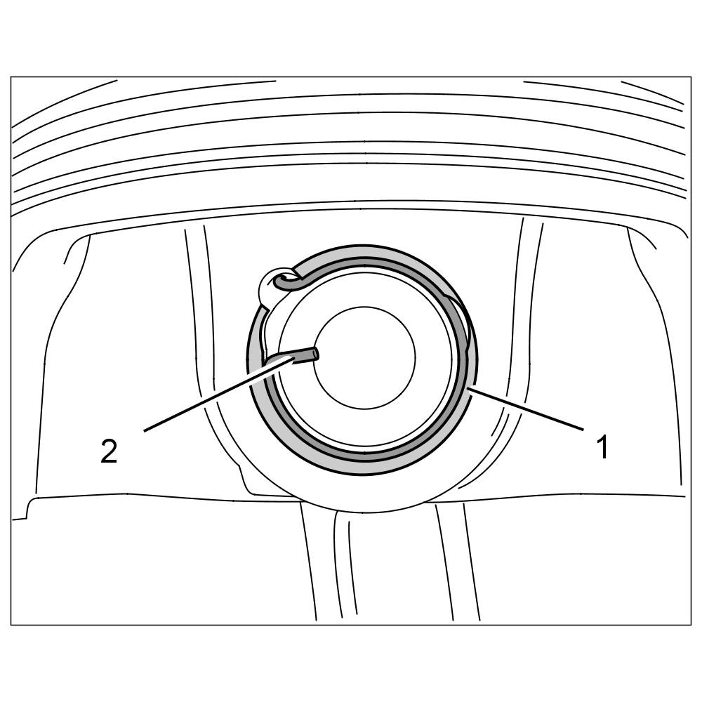 8.3. Slide a new circlip -2- into the assembly tool and press the edges together.