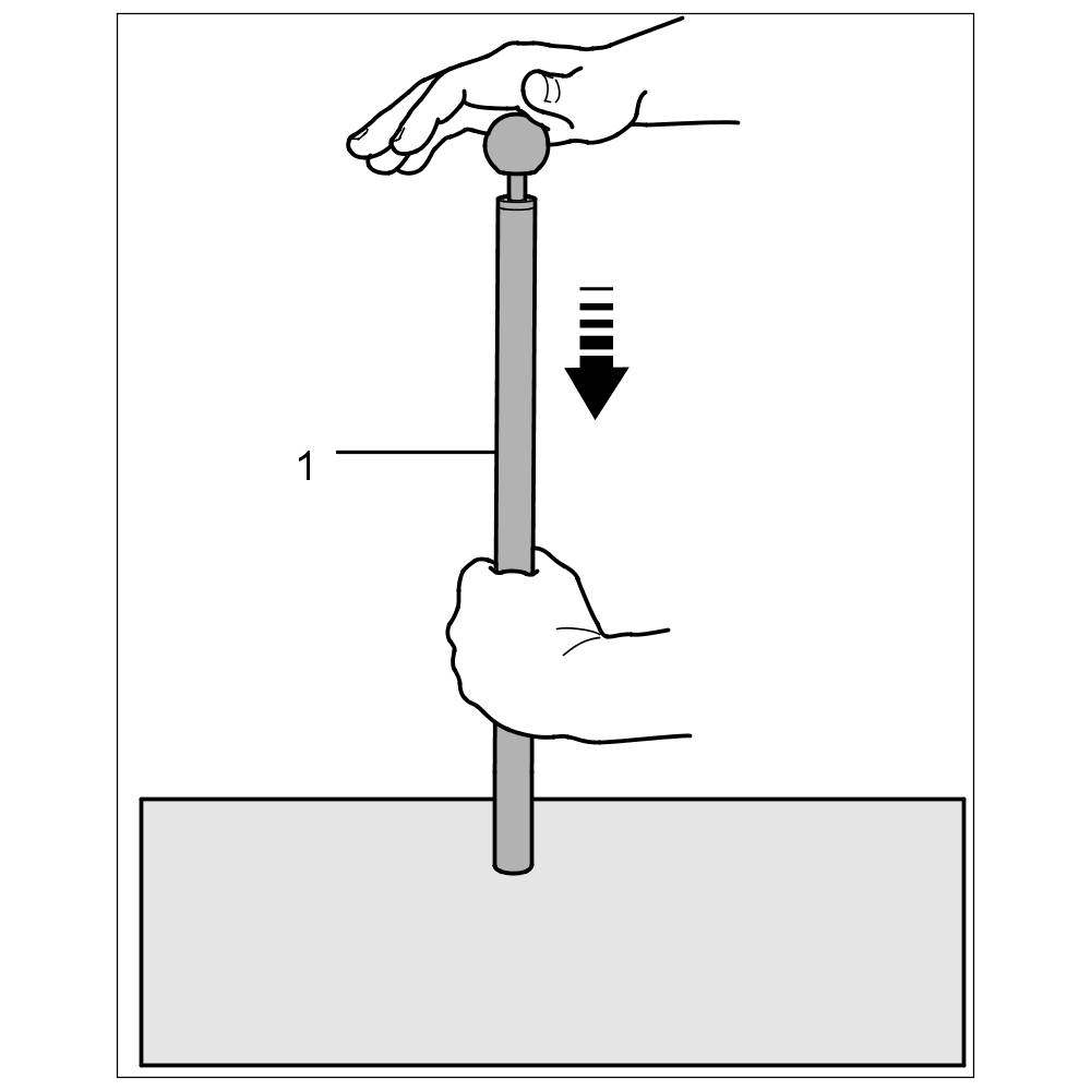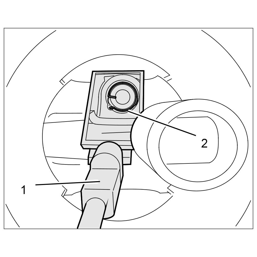 6.1. Hold on firmly to the tube of the tool -1- and tap the push bar slightly towards the piston with the ball of your hand. The circlip will lock with a clearly audible click.