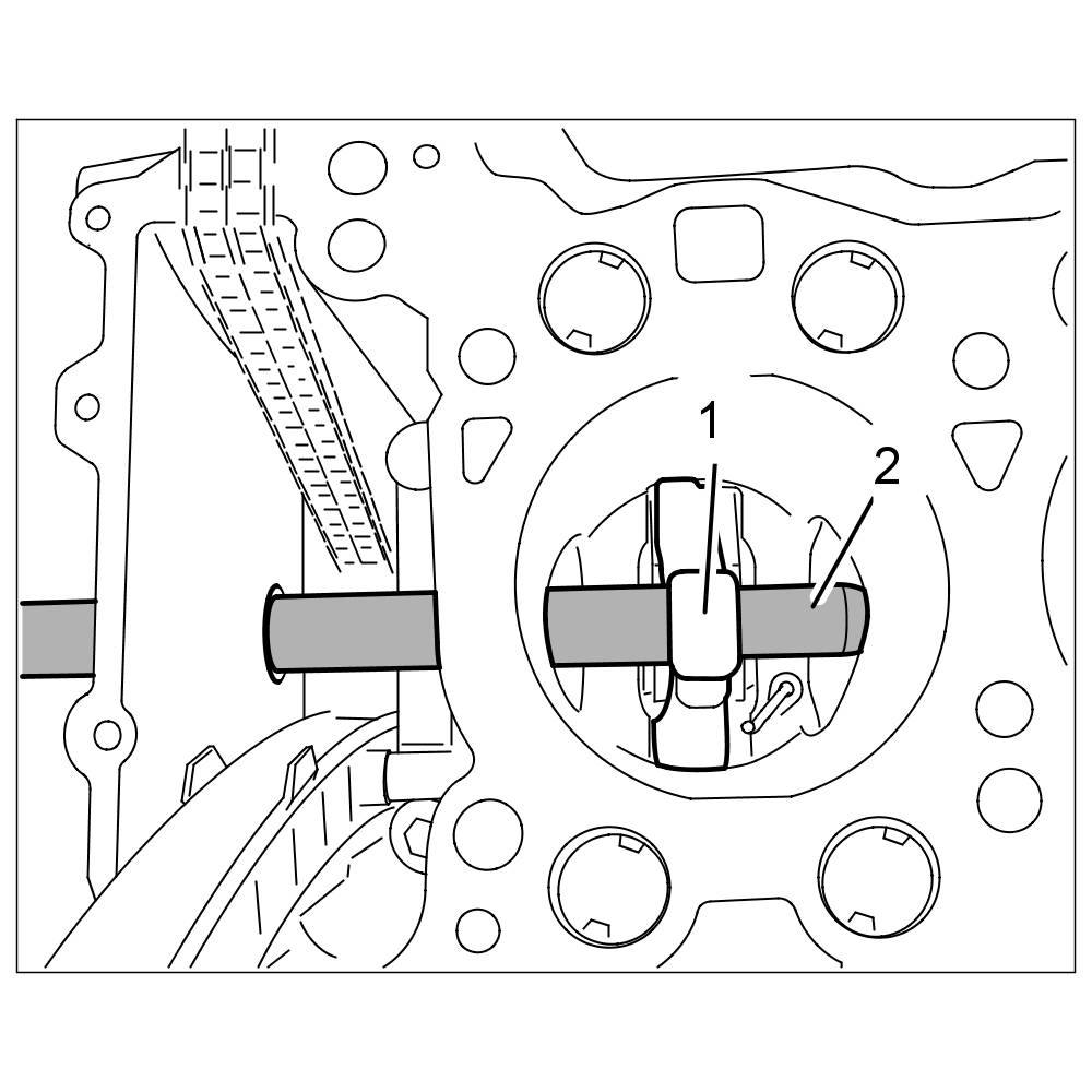 7.5. Turn the tool at the rear hexagon -2- in clockwise direction until it pulls easily out of the piston pin without resistance.