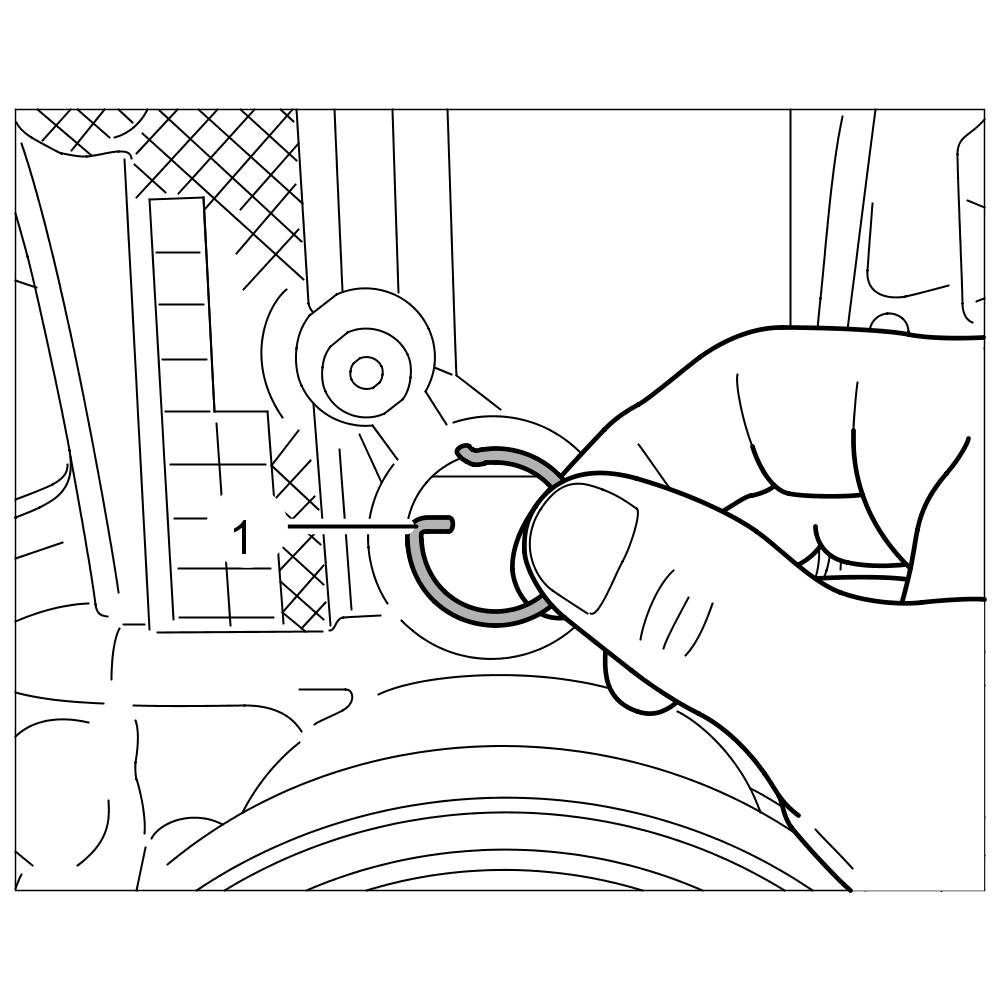 Circlip facing flywheel side - hook at 12 o'clock position (engine in vertical position)