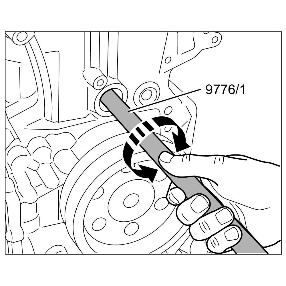11.1. To do this, use turning device 9773 to turn the crankshaft to the bottom dead centre position U 1/4 at the vibration damper.