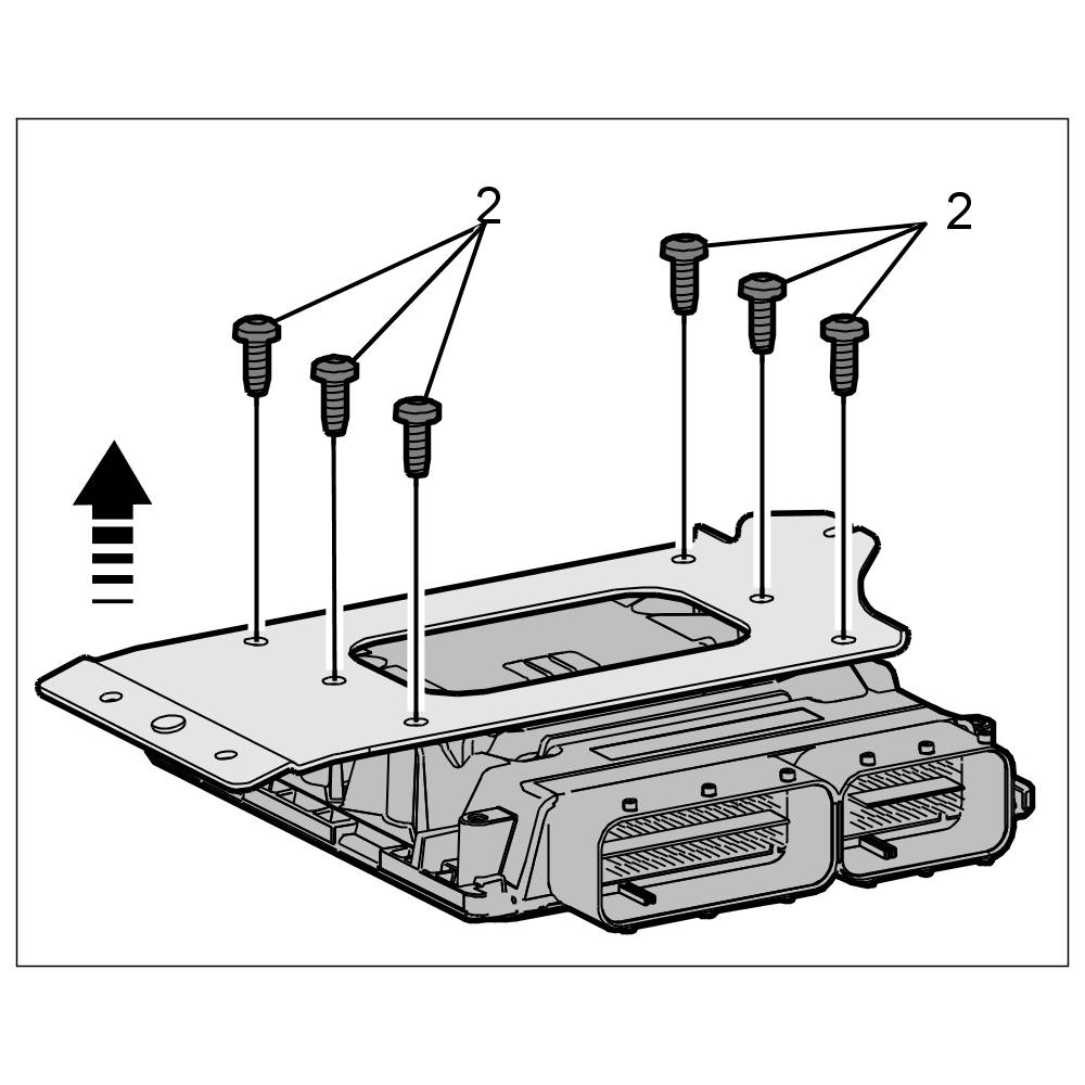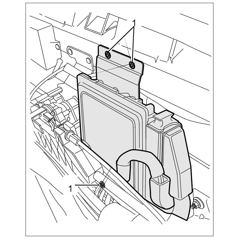 1. Unscrew the three fastening screws -1- for the control unit holder and lift up the DFI control unit and holder.