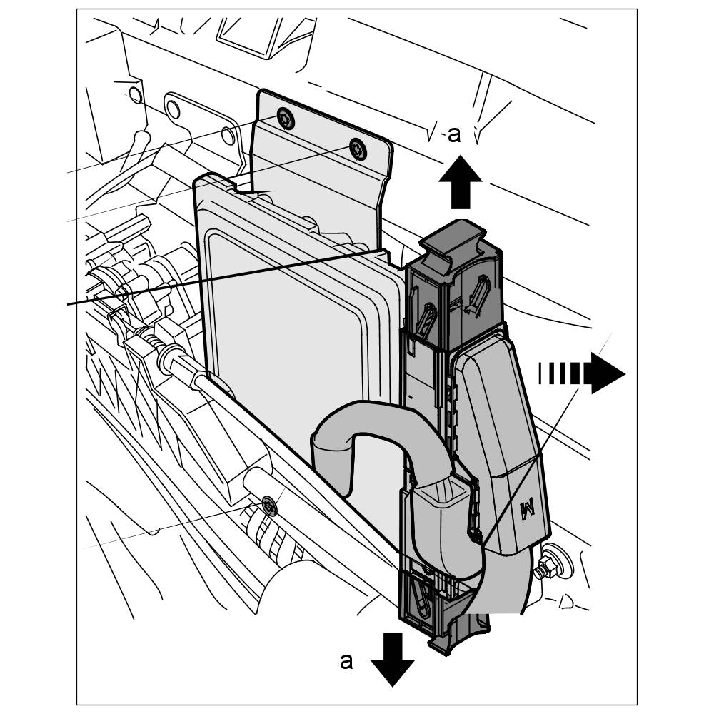 2. Release electric connectors -a- and pull them off the DFI control unit.