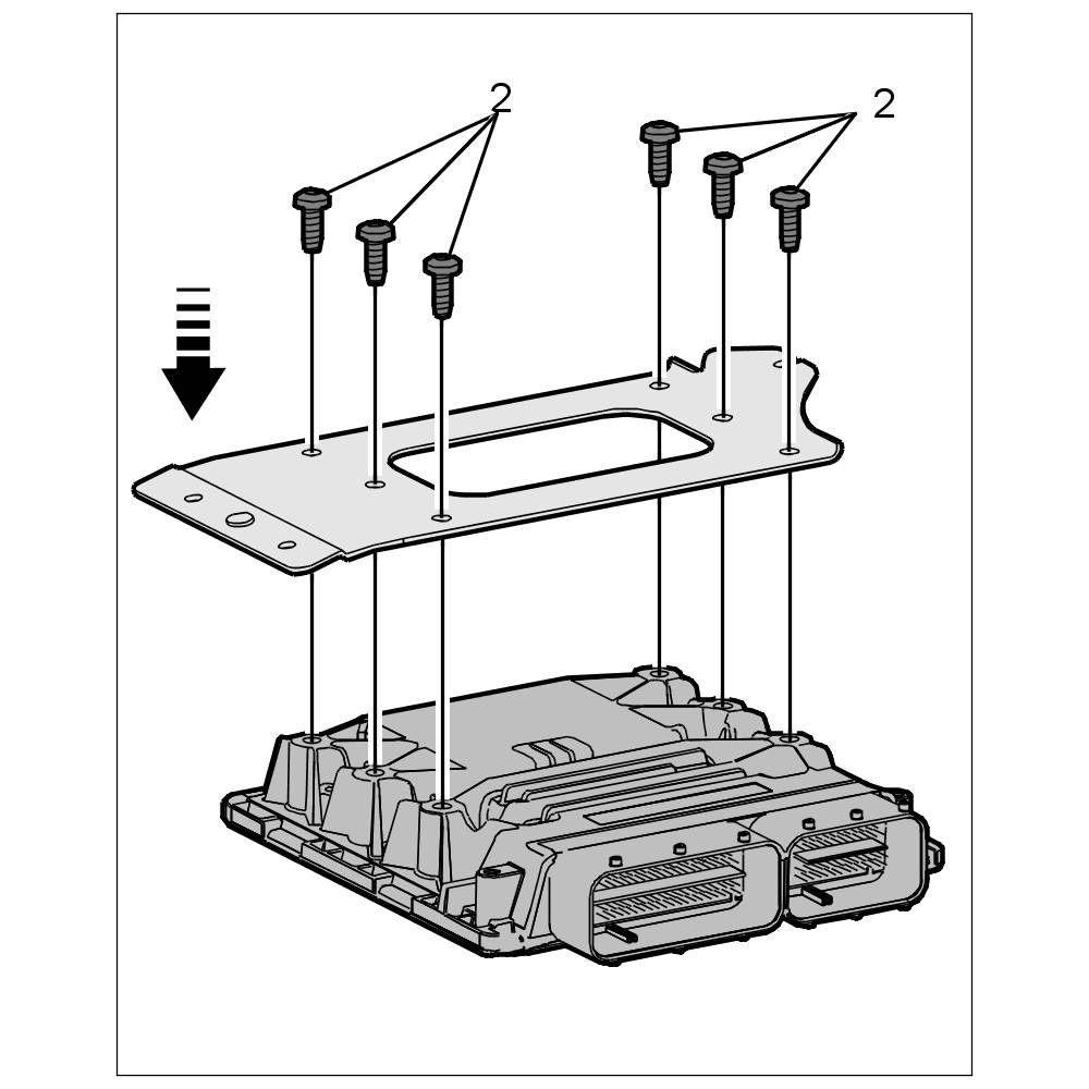 1. Fit the control unit holder on the DFI control unit, position it and screw it down with the six fastening screws -2-.