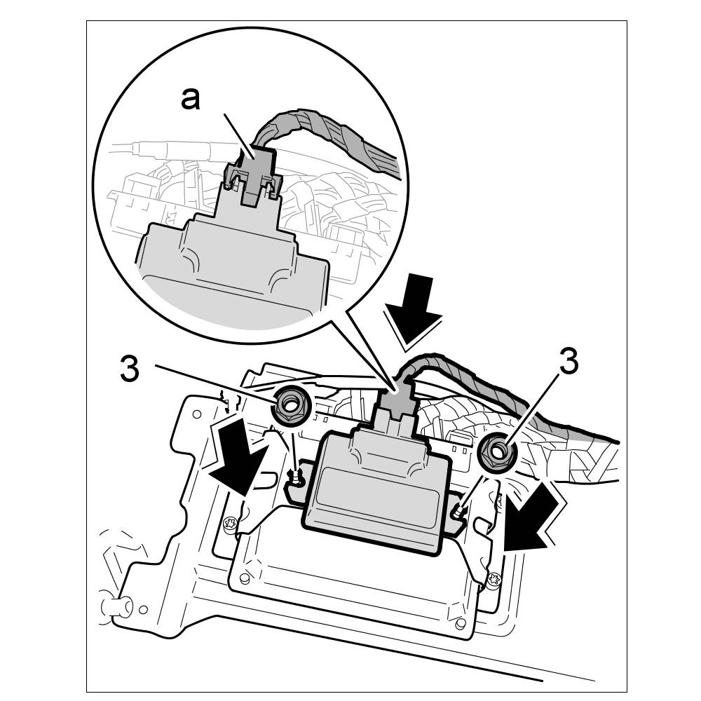 1. Insert electric connector into the four-wheel drive control unit until it engages securely -a-.