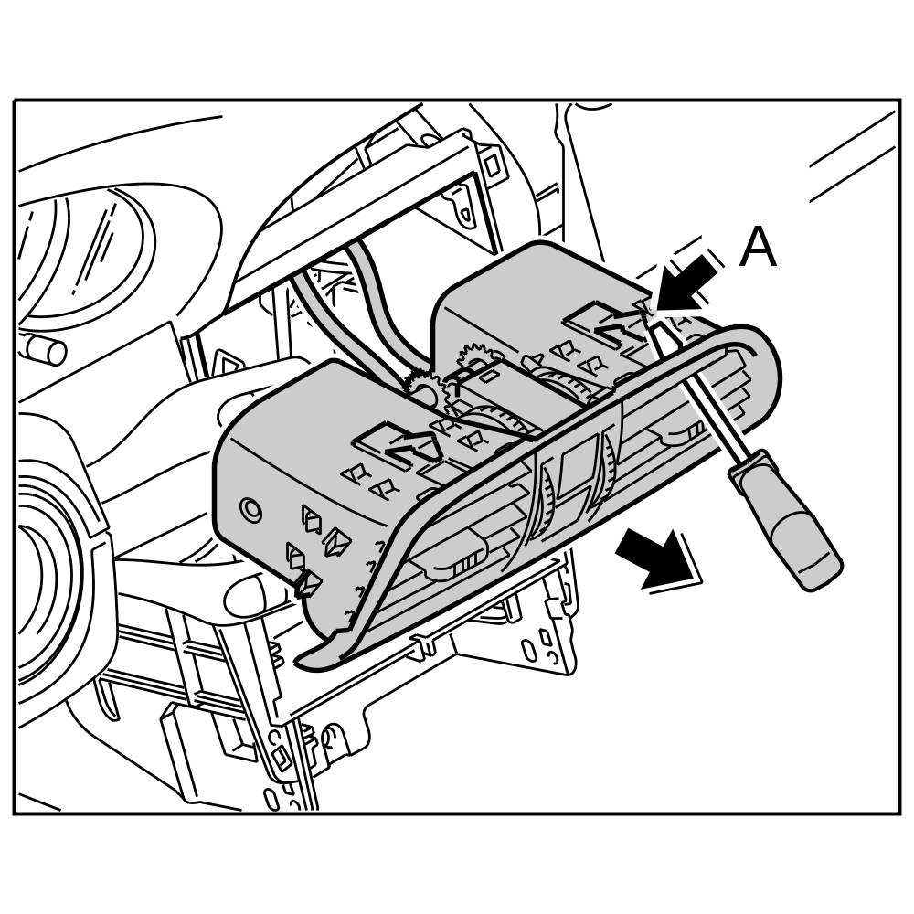 1. With a screwdriver through the top air slot, release the left and right retaining clip -A- and pull the air vent out of the dashboard.