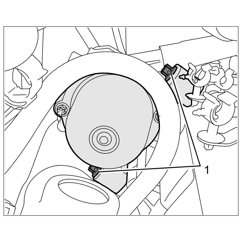2.4. Tighten two special M12 nuts (internal Torx, screw insert T55) -1- on the engine mounting (hydraulic mount) at the left and right.