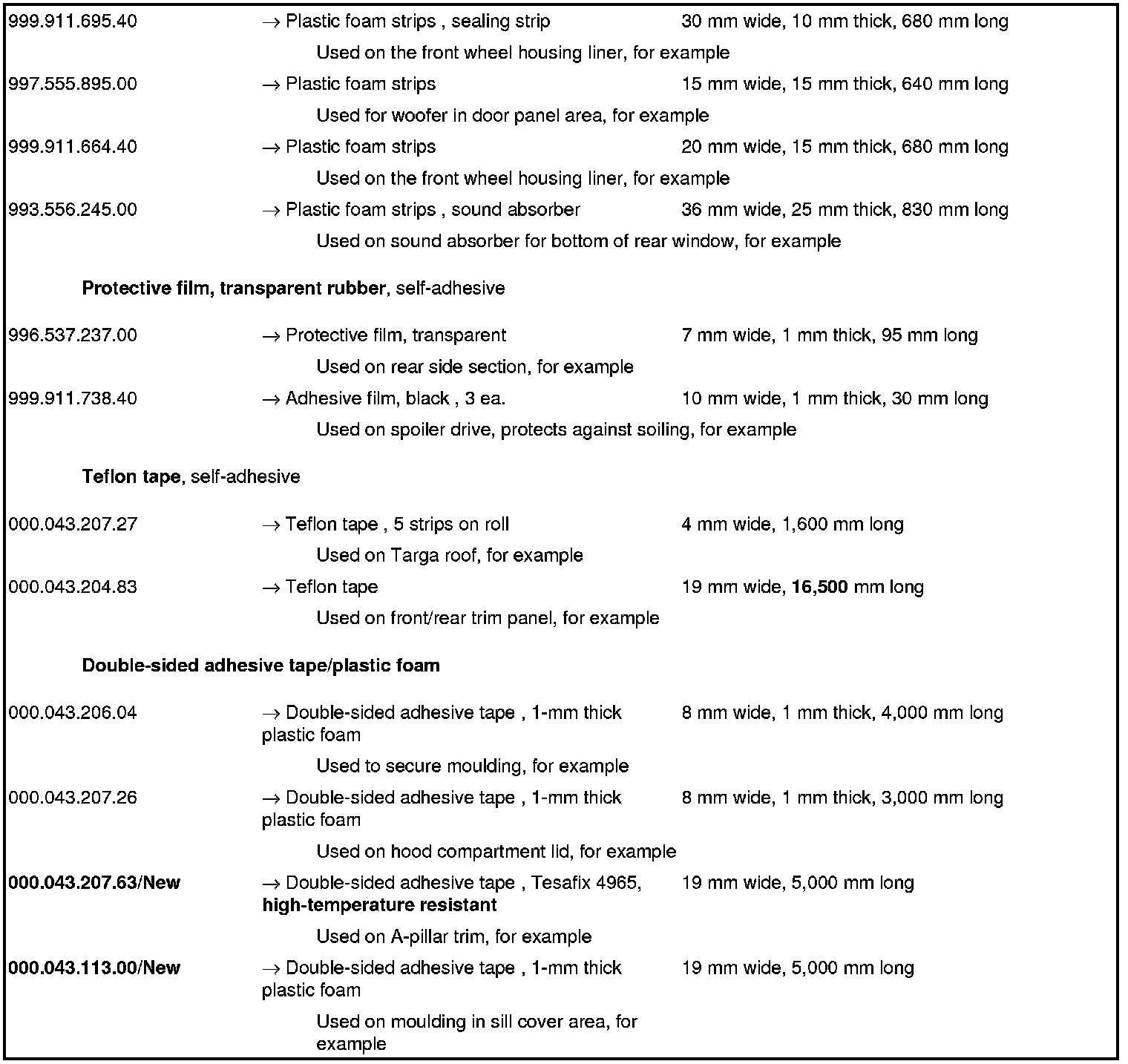 Various materials for different areas of application are listed below for eliminating disturbing noises.
