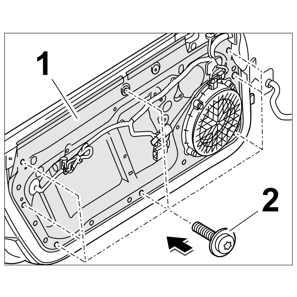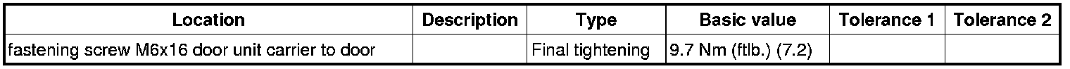 4. Screw down fastening screws -2- for the door unit carrier -1-. Tightening torque => Final tightening: 9.7 Nm (ftlb.) (7.2)