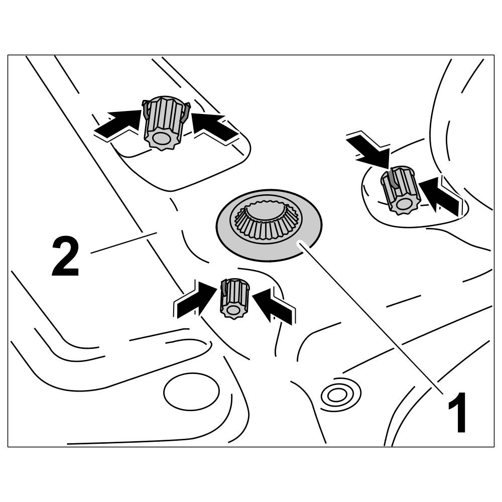 1. Press rubber grommet for electrical wire -1- and bowden cable -2- inwards.
