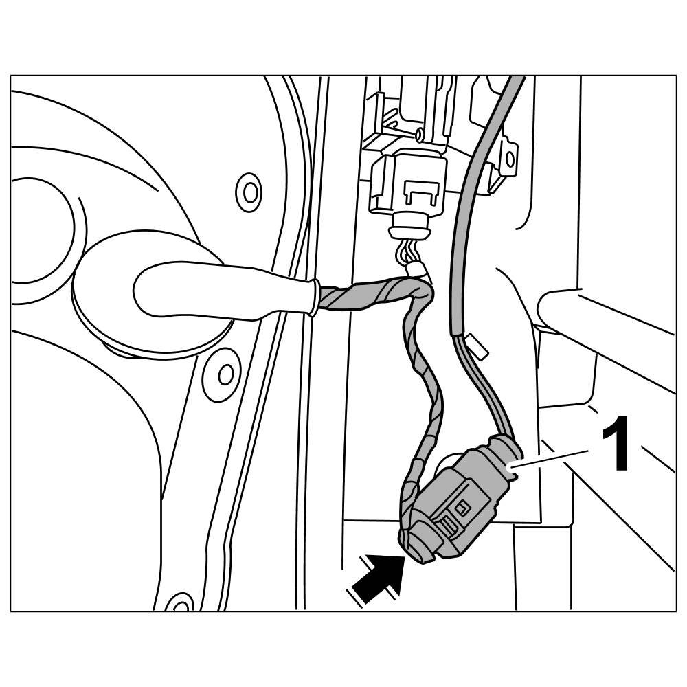 2. Push the wiring harness from the inside through the door aperture and press in the rubber grommet on the wiring harness from inside into the door aperture.