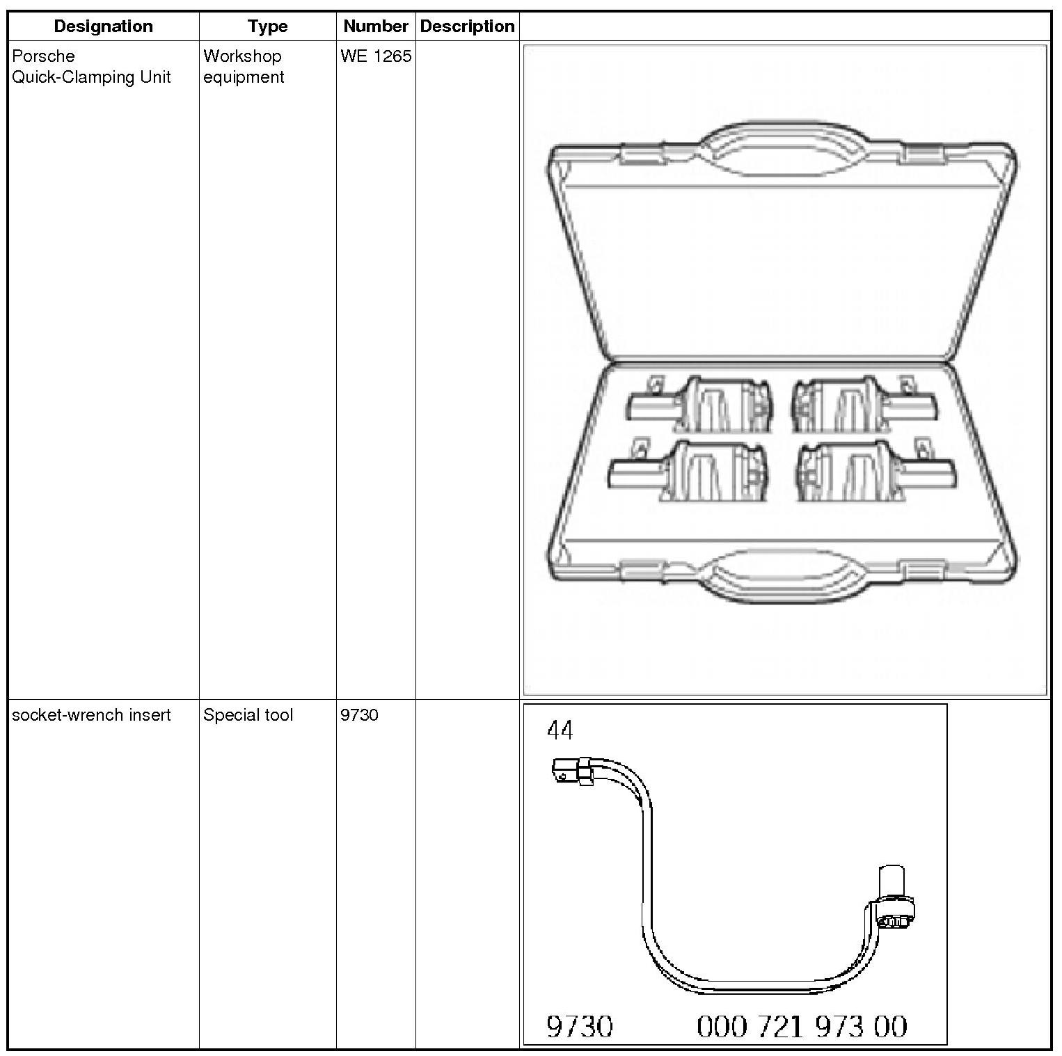 To loosen and tighten the tie-rod lock nut(s), use special tool (socket-wrench insert) P 9730 -A- together with a torque wrench -B-. The tightening torque for the tie rod lock nut(s) of 50 Nm (37 ftlb.), when using a socket-wrench insert 9730, corresponds to a value of approx. 32.5 Nm (24 ftlb.) on the torque wrench.